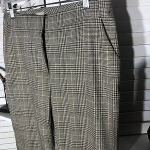 Chico's High Rise Pants Wide-Leg Flare Side Pockets Plaid Brown/Pink/Silver 6R
