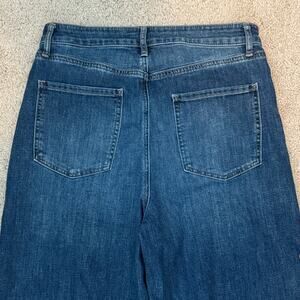 Chico's - High Rise Wide Leg Stretch Classic Fit Jeans. Elevate your wardrobe with these classic blue jeans. Perfect for any occasion, these jeans offer both style and comfort. Medium to dark wash. Traditional 5-pocket style with belt loops and a zipper and button closure. Women's size 10 R ; Chico's size 1.5 R