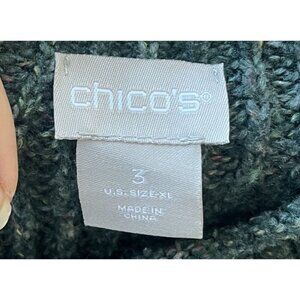 Chico's Holiday Sweater Size L Green Marled Mock-Neck Pullover Oversized Cotton