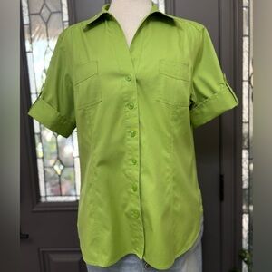 Chico's Honeydew Green Button Cuff Short Sleeve No Iron Blouse | Size Large