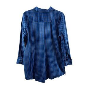 Chico's Houndstooth Collared Button Up 3/4 Sleeve Tunic Blouse Large Size 2 Blue