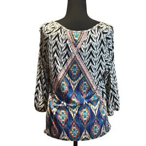 Chico's Ikat 3/4 Length Sleeves Blouse, Multicolor, Black Chico's Sz 0 (4-6)