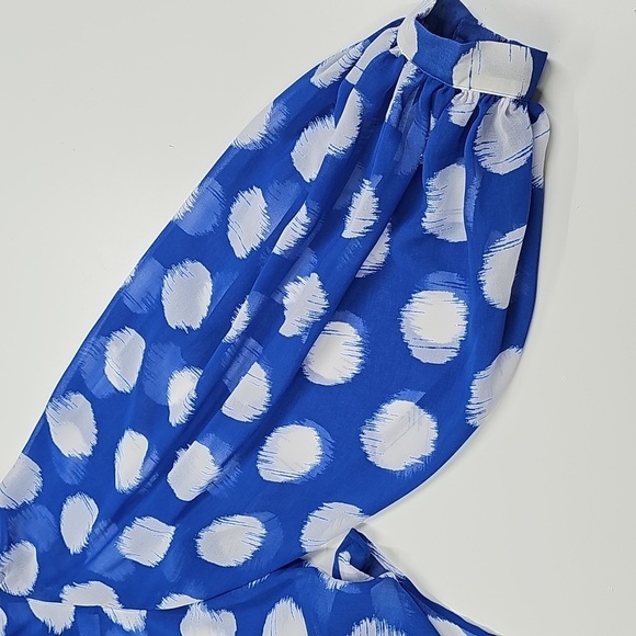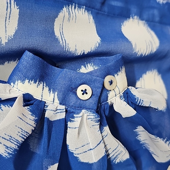 Chico's Ikat Dots Sheer Button Up Blouse In Blue & White Size 8