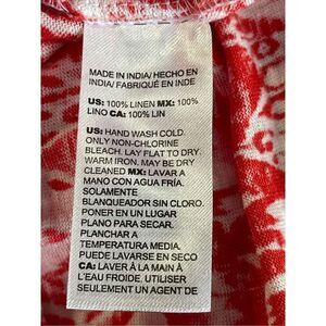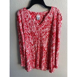 NWOT Chico’s Women’s Ikat Linen Tunic Top Tomato Red and white with Ikat print Long Sleeve Split side seams Size 1 Med