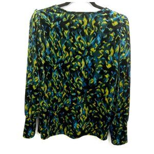 Chico’s Ikat Velvet Long Sleeve Tee Green Colorful Abstract Size L Long Sleeve