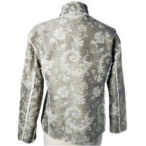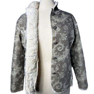 Chico's Ivory Embroidered Damask Jacket With Sherpa Lining size 1 Medium 8-10