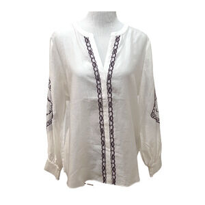 Chico's Ivory Lycelle Embroidered Long Sleeve Shirt Sz 12 (2)$109