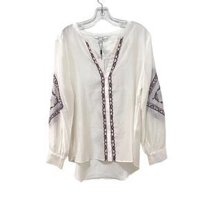 Chico's Ivory Lycelle Embroidered Long Sleeve Shirt Size 12 (2) NWT