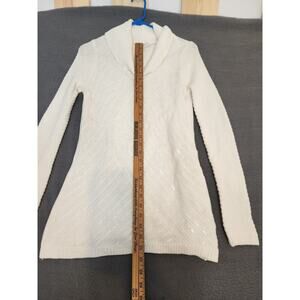 Chicos Ivory Sequin Embellished Cowl Neck Long Sleeve Sweater Sz 0 US S Pullover. Cotton Rayon Nylon Blend. Excellent used condition, no stains or holes. See measurements as the size and care tag were previously removed. Check out my other items I will combine shipping