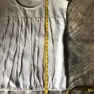 Fay fringe faux-suede top, perforated suede, short sleeve, elegant top.