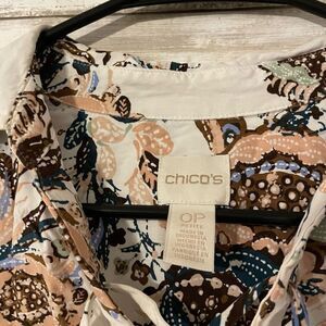Chicos Ivory Floral Pullover Women’s Blouse Shirt 0 Petite Small Tunic Shirt