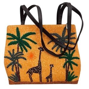 Chico's Izmir Fully Beaded Safari Desert Giraffe Shoulder Tote Bag NWT