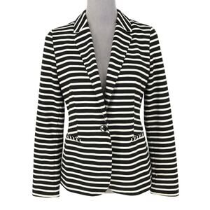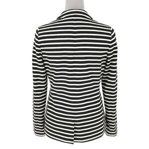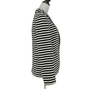 Chicos Jacket 0 Women's 4 Small Black White Stripe Lined Stretch Knit Blazer Nautical