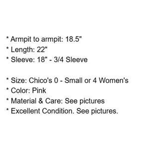 Chicos Jacket 0 Women's 4 Small Linen Pink Embroidered Cut Outs Open Lightweight