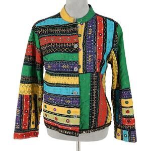Chicos Jacket 1 Women's 8 Medium Cotton Patchwork Lined Colorful Embroidery