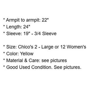 Chicos Jacket 2 Women's Large 12 Yellow Full Zip Ruched Sleeves Crinkle Fabric