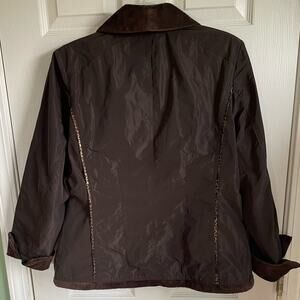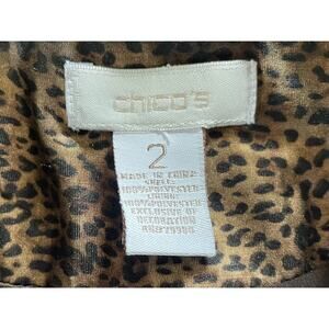 Chico's Jacket 3 Button Front Faux Fur Collar and Cuffs Leopard Print Trim Sz L
