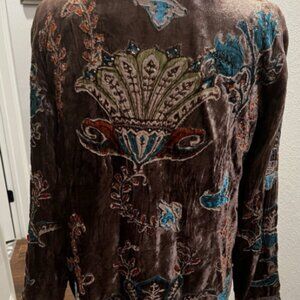 Chico's crushed velvet jacket. Embroidered with sequins. Great for parties, New Year's Eve, holiday gatherings, hosting and more.