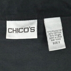 Chicos Jacket 3 Womens XL Black Full Zip Snaps Removable Hood Pockets Drawstring