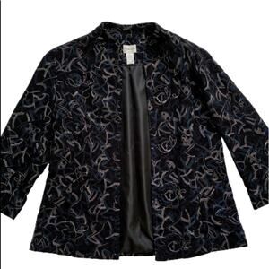 Chico’s Black Embroidered Open Front 3/4 Sleeve Jacket Blazer