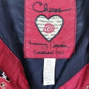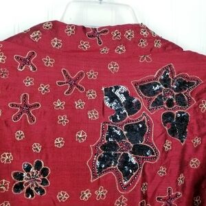 Chicos Jacket Blazer Size 0 Small Red Beaded Silk Sequin Embroidered Cardigan