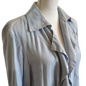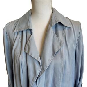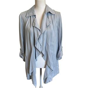 Chico's Jacket Size 2 Large 12/14 Blue Drawstring Long Drape Open Collar