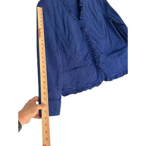 Chicos Jacket Size 2 Large Blue Snake Print Ruffle Trim Textured V Neck Blazer