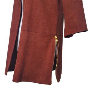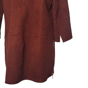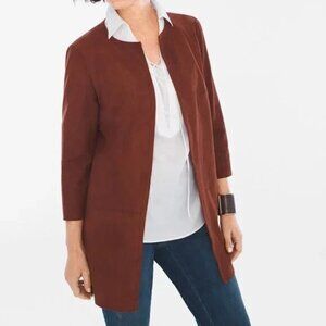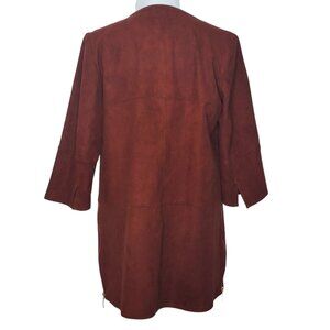 Chicos Jacket Topper Size 0 Small Faux Suede 3/4 Sleeves Zip Side Rich Mahogany