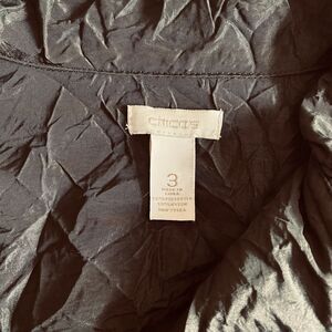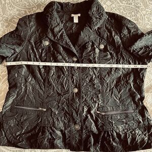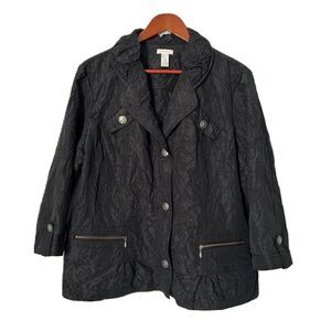 Chicos Jacket Women Size 3 XL Black Crinkle Button Ruffle Office Lightweight