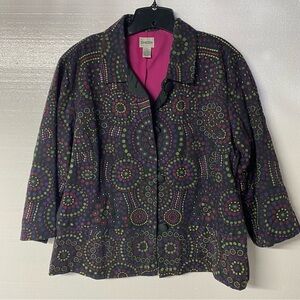 Chico’s Jacket Women Size XL Colorful Embroidered Artsy Button Front Lightweight