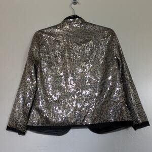Chicos Jacket Women Small Shyanne Sequin Cheetah Holiday Shiny Black Gold Sz O