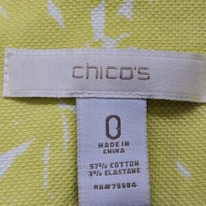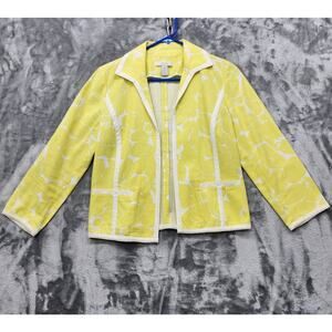 Chico's Jacket Womens 0 2/S Yellow Floral Open Front Stretch Cotton Preppy