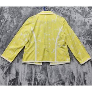 Chico's Jacket Womens 0 2/S Yellow Floral Open Front Stretch Cotton Preppy Office Casual Blazer