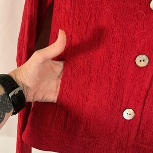 Chico's Jacket Women's 0 Small Red Floral 3 Button Front Long Sleeve