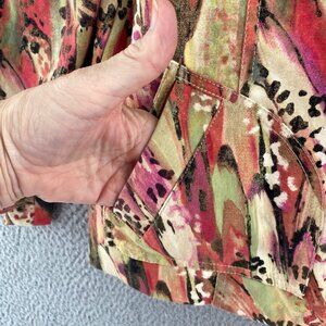 Chicos Jacket Womens 1 US Medium Green Red Multi Animal Print Shimmer Button Up
