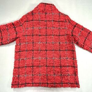 Chico's Design Blazer Jacket Women's Size 2 US 12 Large Red Plaid Sherpa Full Zip
