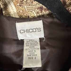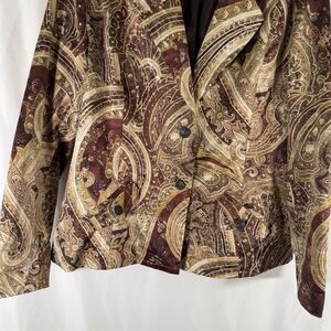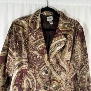 Chico's Jacket Women's 2 Large Brown Floral 2 Button Front Satin Pockets