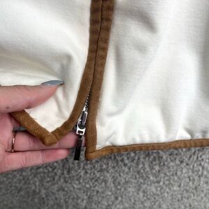 Chico’s Jacket Women’s 3 / XL / 16 Ivory White and Brown Suede Trim Zip Up Ponte