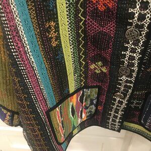 Chico's Jacket Womens Chicos Size 2 Black Multicolored Quilted Boho Patchwork