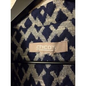 Keywords: Chico's, Jacket, Womens, Full Zip, Diamond Pattern, Textured, Blue, Beige, Casual, Contemporary, Geometric, Bohemian, Unique
