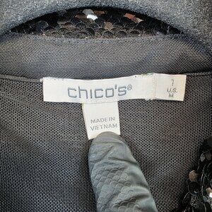 Chicos Jacket Womens Medium Black Sequin Collared Shimmer Party Blazer Top