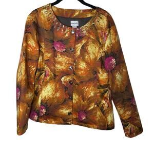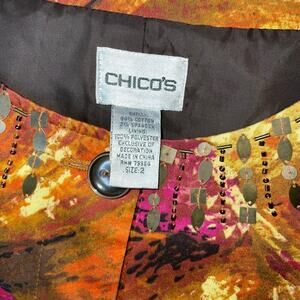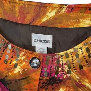 Chico's Jacket Women's Size 2 Orange Flower Embellished Neckline Button Front Medium