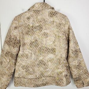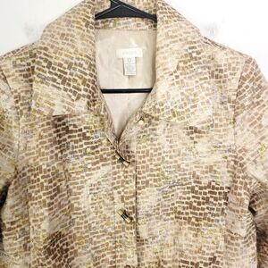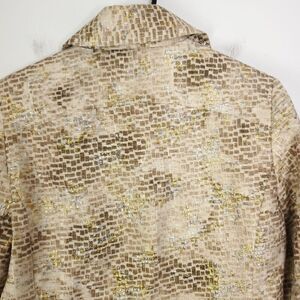 Chicos Jacket Womens S 0 Metallic Silk Exotic Geometric Print Full Button Gold