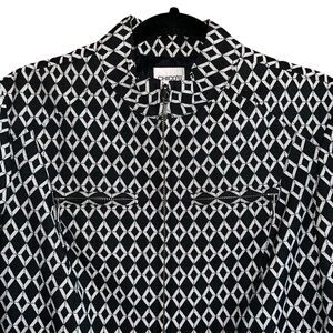 Chicos Jacket Womens Size 1 (US M/8) Black White Print Lined Full Zip Pockets
