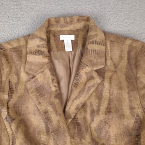 Chico's Jacket Womens Size 2 Large Brown Faux Snakeskin Button Up