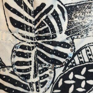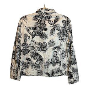 Chico's Jacket Women's Size Medium Floral Sequins Denim Jean Office Black White