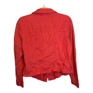 Chico's Jacket Women's Size Medium Lace Linen Lightweight Pink Chicos 1