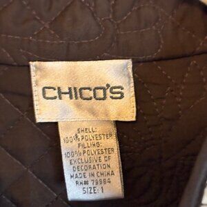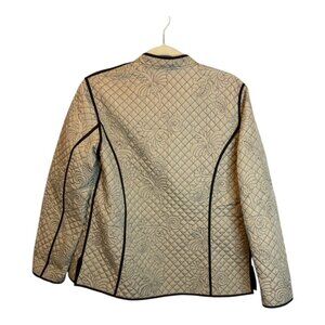 Chico's Jacket Women's Size Medium Lightweight Quilted Embroidered Chicos 1 Tan