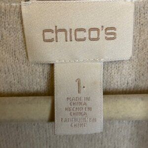 Chico's Jacket Women's Size Medium open front Winter Silver White Wool Chicos 1