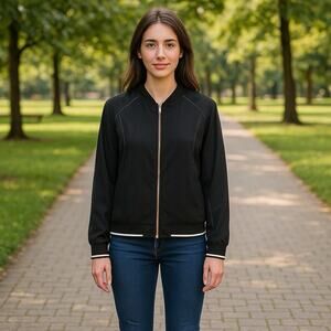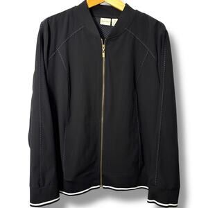 Chico's Jacket Women's Sz 3 (XL) Monochrome Pin Dot Neema Windbreaker Full Zip